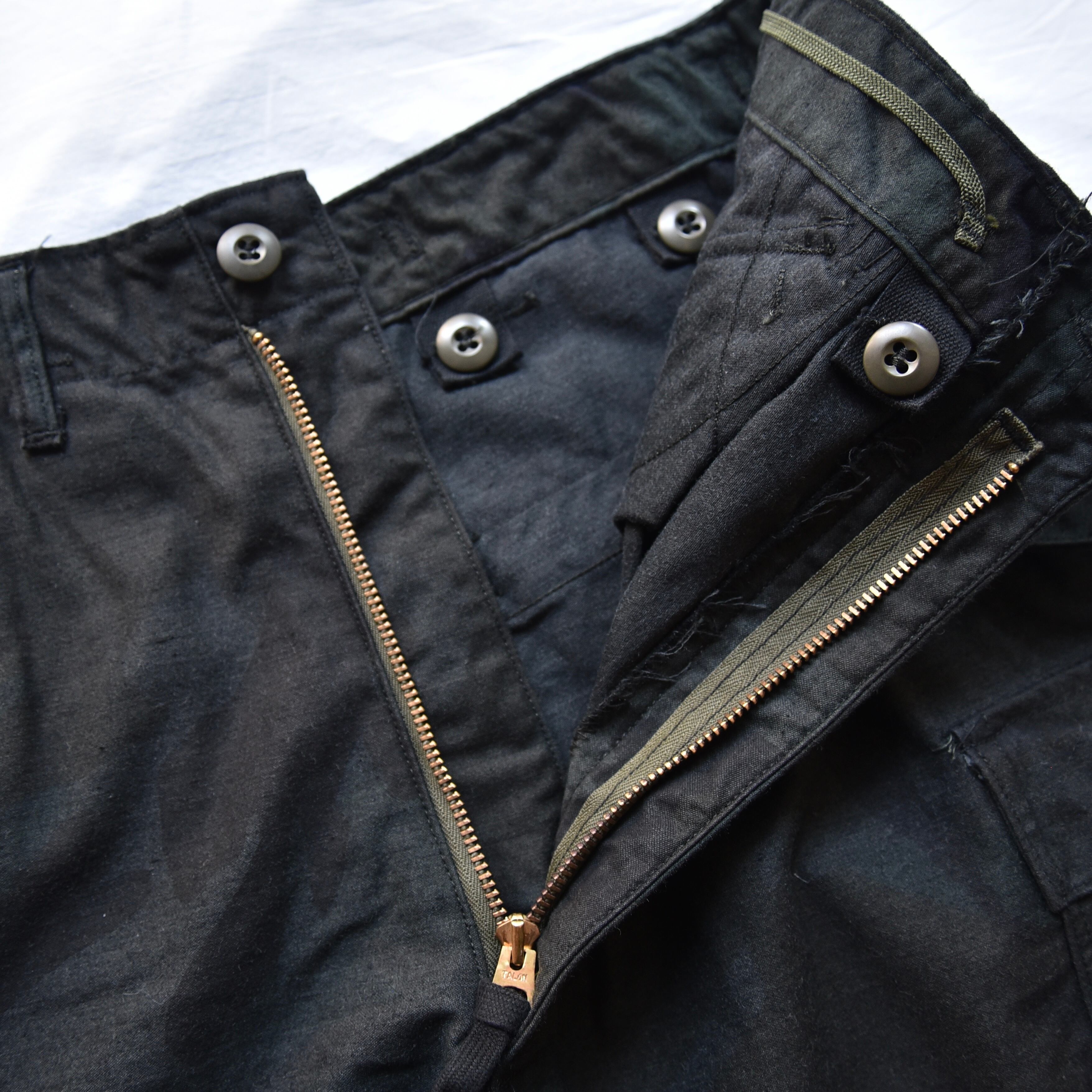 こちらは、ウッドランド迷彩のトラウザーズを黒染めしたスペシャル品。