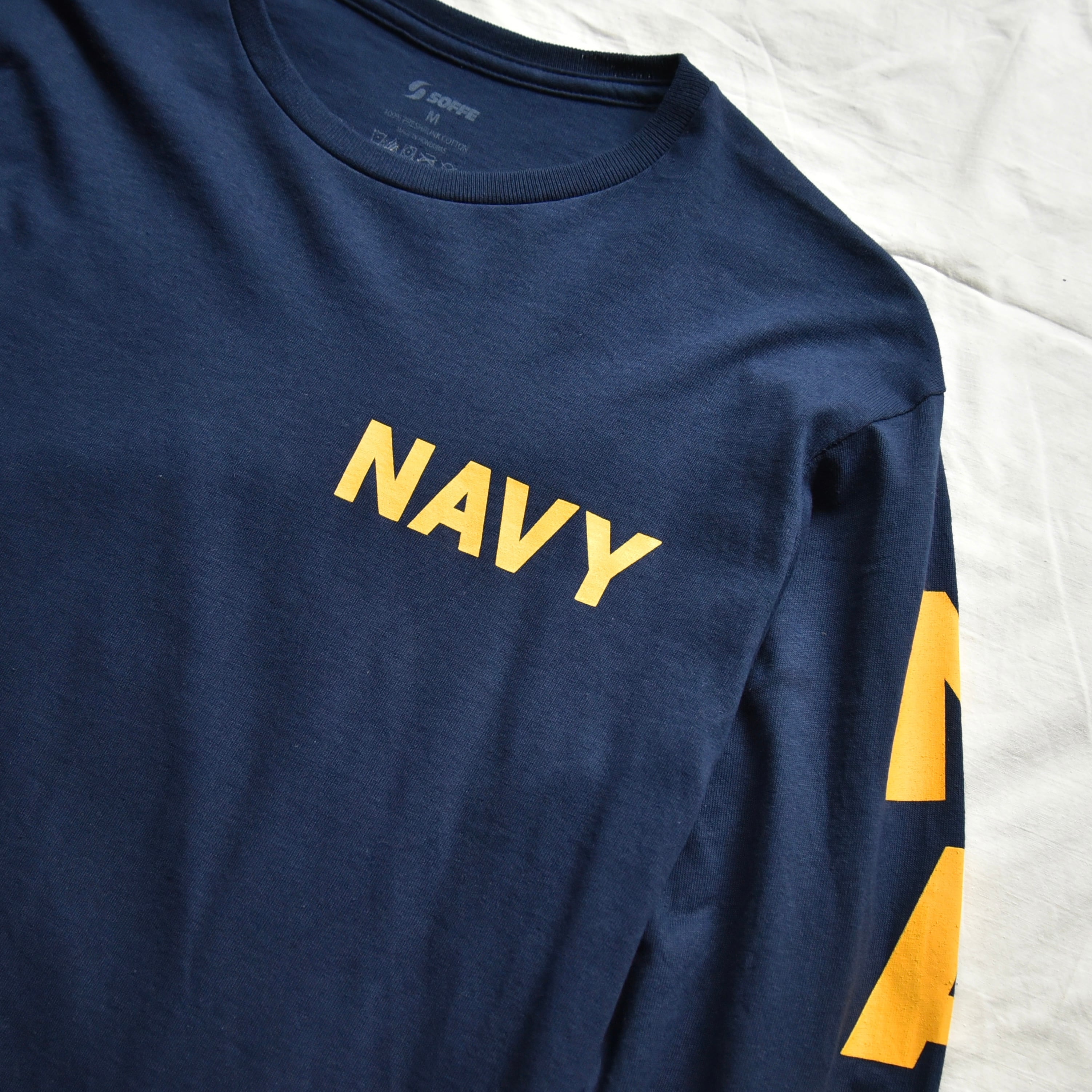 左胸には「NAVY」プリント。